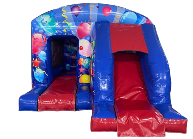Introducing another new addition for 2024. Experience the best of both worlds with our Party Time themed Bounce and Slide Combination Inflatable. Perfect for your party, ultimate fun, boasting vibrant graphics and top-notch features.