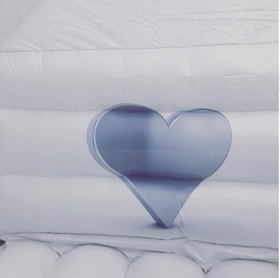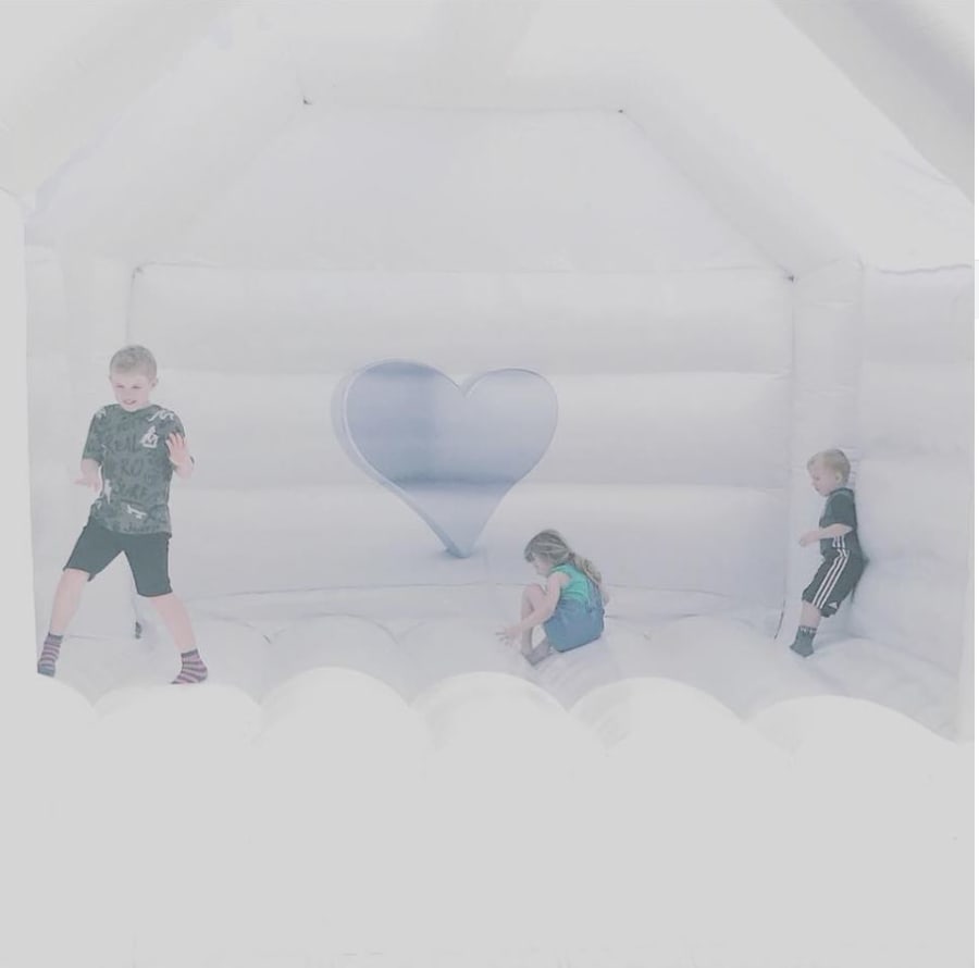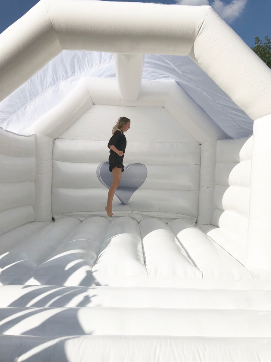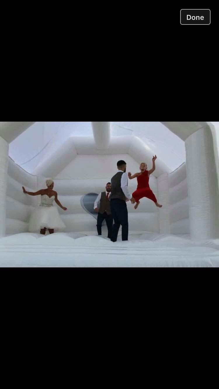 This is a beautiful, white, wedding bouncy castle which is suitable for both adults and children.