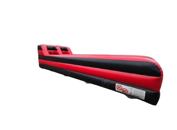 The Real Deal in Bungee Runs. This has twin lanes and is 35 feet long (10.7m) and all the fun you can bring to a party or event. A competitive inflatable game where two people race against each other whilst strapped to strong, elasticated bungee cords, trying to run as far as possible before the cords pull them back. You have a 'marker' in your hand that you put down on a velcro strip which marks your position. Farthest one wins.