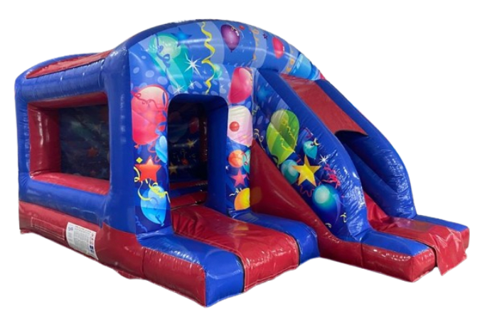 Introducing another new addition for 2024. Experience the best of both worlds with our Party Time themed Bounce and Slide Combination Inflatable. Perfect for your party, ultimate fun, boasting vibrant graphics and top-notch features.