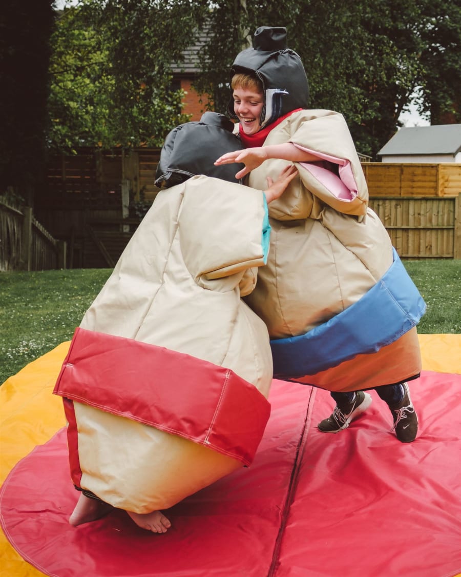 Our sumo suits are available to hire for birthday parties, school fetes, community events and family fun days. We offer delivery of Sumo Suits throughout Coventry, Bedworth, Ryton, Bubbenhall, Kenilworth, Leamington Spa, Warwick